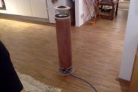 bin erst jetzt auf Deine Entwicklung gestossen. Warum ich die Anfänge verpennt habe, ist mir absolut schleierhaft. Kein Problem! Ich finde Dein Projekt total spannend, weil ich glaube, dass ein richtig funktionierender Rundstrahler eine wunderbare Räumlichkeit insbesondere bei Stimmen und Einzelinstrumenten erzeugt. Fast jedes Instrument ist ein mehr oder weniger guter Rundstrahler. Bezüglich der Räumlichkeit, Stimme und Einzelinstrumente bin ich einverstanden, das sind die Stärken von Rundstahlern. Instrumente sind aber nur bedingt Rundstrahler, weil deren Abstrahlung in vielen Frequenzbereichen sehr differnziert betrachtet werden muss, teilweise bilden sich frequenzabhängige Abstrahlkeulen. Was ich an Deinem Konzept nicht verstehe, ist, dass Du beim HT keinen Reflektor einsetzt u.a. mit der Begründung, dass dieser zu spät in bezug im Hochton reflektiert, aber beim TMT einen nicht wesentlich größeren Reflektor benutzt. Dieser dürfte nach Deinen Erkenntnissen überhaupt nicht reflektieren. Ein Reflektor kommt erst bei der 5 fachen Wellenlänge richtig zum Tragen, z.B. wirkt ein 17cm Kegel erst ab 10khz. Ein Breitbänder müsste also bis 10khz und 90 Grad seitlich linear abstrahlen, erst dann macht der Kegel etwas Superhochton. Das ist der Grund dafür, das fast alle Rundstrahler fehlkonstruiert sind. Du siehst das an dem fehlendem Pegel, der meist zwischen ca. 2- und 12khz eine breite Senke hat. Mein Kegel über dem TMT hat keine wirkliche Bedeutung, da dieser ab ca. 1.4khz getrennt wird. Er ist einerseits für eine schönere Optik, andererseits als Schallwand für den Hochtöner zu verstehen. Ich habe vor 14 Jahren einen Rundstrahler gebaut, mit dem ich sehr zufrieden war und den ich vor einem Jahr an einen Lautsprecher Freund in Dänemark verkauft habe. Als Konzept ein Breitbänder, der im Bass entlastet wird. Bestückung: TT Mivoc LWM2456 XM (gibt es nicht mehr), BB: Tangband W5-1611SA. Hier ein paar Fotos. Zur Kontrasterhöhung im Bad geschossen. Kannst Du mir ein paar Frequenzmessungen schicken? Bleib am Ball. Es würde mich sehr freuen, wenn das Projekt ein Erfolg wird. Das hoffe ich auch, Dir ein schönes Wochenende! LG Paco
