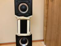 Kohlefaser 8 Zöller und Berillium Hochtöner, die nur mit einem Kondensator als Weiche auskommen sollten. Die Messungen waren eher grausig, der HT Bereich war bis 10 KHZ da ( 6 db lauter als der Bass) um dann 10-12 dB abzufallen. Über den Rest sage ich lieber nix. Aber Norman will da mal ran um das alles passender zu machen :-)