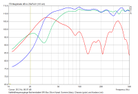 Genau das war mein Problem, dass es hier nicht gepasst hat. Bei der relativ tiefen Abstimmfrequenz und dadurch, dass ich die Messungen standardmäßig erst bei 20 Hz loslaufen ließ, war da mit Pegelangleichung nicht mehr viel zu machen. Auf das letzte dB kommt es jetzt ja auch noch nicht an - die prinzipiellen Unterschiede (vorallem in dem, was aus dem Reflexteil kommt) sollten auch so deutlich geworden sein.