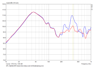SPL Nahfeldmessung BR-Kanal ohne (blau) und mit obiger Bedämpfung (rot)