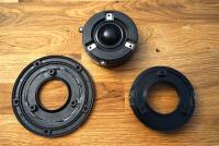 Der Adapterflansch passt besser auf den Hochtöner als die originale Frontplatte, das ist soweit sehr schön. Die Optik mit dem schwarzen, glänzenden PLA gefällt mir nicht. Da sieht man die 3d Druck Struktur zu gut. Ich werde bei Zeiten ein Filament mit matter Oberfläche besorgen.