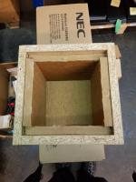 Zuerst 1 Matte Wolle im IHA, dann 2 Matten, dann 2 Matten und 1 Matte mit einem Loch für den IHA vor dem IHA und zu guter Letzt die halbe Box voll mit Wolle.