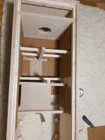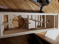 Unterhalb vom TT sollen noch je zwei Quer- und Längsstreben kommen, die kann ich aber erst einleimen, wenn die Bassreflexabstimmung erledigt ist. Sonst kann ich den Teiler, der als Kanaldeckel dient, nicht einfädeln.