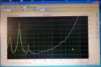 Die nächste Hürde ist der IHA. Ich hab die Abstimmfrequenz genau getroffen. Die erwartete Impedanzspitze ist bei ordentlich gestopftem IHA zwar sehr gedämpft und breit aber bei weitem nicht weg.