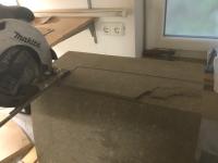 Ihr habt des Nachts in der Werkstatt schon geschlafen und der Fehlerteufel hat sich eingeschlichen? Bevor ihr euch mit einer kalten Dusche bestraft, fangt lieber an den Mist auszubügeln. Die 60min reißen`s am Ende auch nicht. Außerdem könnt ihr euch freuen, dass ihr mal anderes Werkzeug einsetzen dürft. :thumbup: Fehlerbeschreibung: Ups... diese Platte war nicht richtig verklebt. Der Bandschleifer hat dann Vibrationen erzeugt und die Platte zerbrochen. Eventuell war ich zusätzlich auch sehr faul und habe große Überstände einfach mit dem Bandschleifer abgeschliffen. Dazu gleich noch das Ergebnisbild, damit ihr direkt wisst wohin die Reise geht. [ATTACH=CONFIG]57716[/ATTACH] [ATTACH=CONFIG]57723[/ATTACH] So wie unten hätte es aussehen sollen, der Leim quillt an allen Kanten heraus. Im Bild oben fehlte an einer Ecke der ausgequetschte Leim. Das war die einzige Kiste bei der ich offensichtlich vergessen habe das zu prüfen. [ATTACH=CONFIG]57717[/ATTACH] [ATTACH=CONFIG]57718[/ATTACH] (Hier sieht man auch das U der Latten, die dadurch auch in der Mitte Anpressdruck erzeugen.) Aber jetzt weiter mit dem Lösungsweg: Wir stellen erstmal die Plattenstärke an der Handkreissäge ein. Ein alter Abschnitt dient der Höhenkontrolle. [ATTACH=CONFIG]57716[/ATTACH] Danach schneidet man die fehlerhafte Verklebung aus und schlitzt die Platte. Die Platte wird dann mit dem Stemmeisen abgestoßen. Auch die Ecke wird mit dem Stemmeisen abgetrennt. Da die Verklebung erst max. 24h alt war, war der Leim noch nicht 100% trocken, die Trocknung dauert etwa 3 Tage. [ATTACH=CONFIG]57719[/ATTACH] [ATTACH=CONFIG]57720[/ATTACH] [ATTACH=CONFIG]57721[/ATTACH] Die Fläche noch einmal kurz mit dem Exzenterschleifer und 40er Papier schleifen und die fehlerhafte Stelle sieht gleich ganz anders aus. [ATTACH=CONFIG]57722[/ATTACH] Danach passt man eine Platte ein und verklebt diese. Dabei ist es wichtig die Platte in die Ecke zu schieben, denn nur so füllt der Leim kleine Lücken des Freihandschnittes. Befreit euch von 100% Arbeitsgenauigkeit, dann wird man auch fertig. :p Den Rest lösen Füllstoffe. Nach dem lackieren ist die Stelle spätestens unsichtbar. [ATTACH=CONFIG]57724[/ATTACH] [ATTACH=CONFIG]57725[/ATTACH] Diese Verleimung lässt man dann stehen, bis der Leim wirklich durchgetrocknet ist. Die Platte wird wieder bündig geschliffen und im Ergebnis lässt sich kaum noch erkennen, dass dort eine Reparatur stattfand. Der Stoß quer wird übrigens noch überklebt. Aber dazu später... ![]() [ATTACH=CONFIG]57723[/ATTACH] Na das war ja einfach und ging auch noch schnell. :prost: _____ Übrigens: der 50mm Forstnerbohrer ist gekommen und die Löcher sind gebohrt. Durch die etwas höhere Drehzahl musste ich einige Pausen einlegen um die Bohrertemperatur im Griff zu behalten. Der 20€ Bohrer soll ja nicht gleich ausgeglüht werden. Die Bohrung mit der SBE 900 Impuls ging einwandfrei. Die Kraft hat ausgereicht um große MDF-Streifen / Späne abzuheben. [ATTACH=CONFIG]57726[/ATTACH] [ATTACH=CONFIG]57727[/ATTACH] Ich hoffe ihr hattet wieder Freude beim lesen! Christian