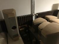 Dort dürfte aber ohnehin kaum etwas passieren, da der Wellenleiter vom Hochtöner gleich gegenüber liegt. [ATTACH=CONFIG]58585[/ATTACH] Gegen die stehende Welle zwischen Boden und Deckel haben sich die IRR in den Gehäusen eingefunden. Ich habe die Halter mit ziemlich viel Kraft auf die Rohre gepresst und dann noch fürs Gewissen Sikaflex Scheibenkleber an die Kanten gedrückt. Die Halter sind anschließend mit Fugenleim in die Kiste geklebt. Um das noch zu verbessern werde ich noch Sikaflex andrücken. Da ich keine Schraubzwinge an den wandseitigen Halter anbringen konnte, habe ich dort Keile eingepresst, die die Halter gegen die Außenwand drücken. Als Deckel für Abschnitte habe ich mit dem 50mm Bohrer MDF Reste nicht ganz durchgebohrt, sodass diese sauber abschließen. In den Boden der Bohrung ist das Rohr wieder mit Sikaflex eingeklebt. Auch die Sonsofilstreifen haben einen Klebepunkt am Boden erhalten. Grund dafür ist, dass die Rohre im Gehäuse nach unten geöffnet sind und ich damit rechnen müsste, dass die Sonsofilstreifen sonst im laufe der Zeit herausrutschen. [ATTACH=CONFIG]58586[/ATTACH] [ATTACH=CONFIG]58587[/ATTACH] [ATTACH=CONFIG]58588[/ATTACH] [ATTACH=CONFIG]58589[/ATTACH] Das BR Rohr habe ich unterhab des 12LX60V2 angeordnet. Die Öffnung wird nicht von den IRR verdeckt. So langsam wird es eng in den Kisten. Insbesondere vor dem Hintergrund dass ich ja noch die Weichen einbauen muss. Der aktuelle Plan ist, dass ich auf der Schallwand des Subwoofers (innenseitig) noch ausreichend Platz für die Bauteile habe. Ggf. könte ich die Weichen für TMT und HT auch ins Top auslagern, da hinter dem TMT am Boden des Gehäuses noch Platz ist. Ich bin mir noch nicht sicher wie ich das löse. Ich bräuchte ganze 6 Polklemmen am Sub, und 4 am Top wenn ich alles in den Sub verlagere. Sonst wären es 4 am Sub und 2 am Top. Ich schätze das ist die bessere Lösung. Habt ihr dazu eine Meinung? Ich hatte auch schon eine Siebdruckplatte für die Weichenbrettchen beschafft. Darauf steht jetzt aber Juniors schwarze Lego-Ritterfestung. Ich wünsche euch ein schönes Wohenende. Christian