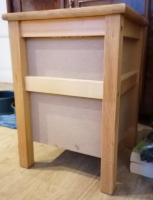 der erste Lautsprecher spielt als Versuchsaufbau. Und er spielt gar nicht übel. Ich habe allerdings etwas umdisponiert. Die Basis ist jetzt ein Hocker namens ODDVAR.