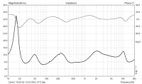 Das Impedanzminimum liegt wie simuliert bei recht niedrigen 2,7 Ohm @300z, allerdings mit kaum Phasendrehung (rein Ohmsche Last). Trotzdem eher ne Box für modernere Class A/B oder Digitalamps, die lieber Strom als Spannung liefern - weniger was für Röhrenverstärker....