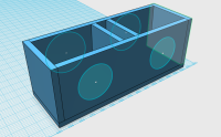 Wenn ich Deine bemaßte Zeichnung hernehme, und davon ausgehe, dass für den mittleren Teil nochmal 70 mm in der Breite weggehen, bleibt für jeden Lautsprecher ein Innenmaß von Breite 182 mm, Höhe 130 mm und Tiefe 110 mm übrig, ergibt dann pro Lautsprecher ein Volumen von 2,60 Liter.