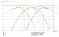 Die Trennung wurde etwas verändert und zeigt nun LR4@700Hz und LR4@2500Hz. Man kann wahrscheinlich etwas tiefer als 700Hz trennen. Die 2,5kHz Trennung kommt dem DXT zugute und nutzt die MT-Kalotte besser aus (so sollte Klirr praktisch nicht vorhanden sein):