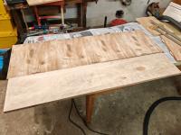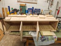 was mich stört ist die Holzqualität:mad: heutzutage. Armin hat teueres Birkenmultiplex im Baumarkt im Zuschnitt gekauft. Wir mussten nur ein Brett leicht unter der Festoschiene korrigieren...... aber trotz neuer Makita Lamellofräse und konzentriertem Arbeiten mit vier Augen und Händen und vielen Zwingen ist es uns nicht gelungen einige leicht verbogene Platten korrekt zu verleimen. Das ist zwar schnell mit der Fräse und dem Bandschleifer gerichtet und sieht danach kein Schwein mehr aber stört den ErgeizSad.