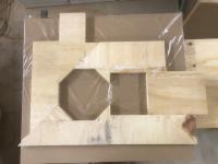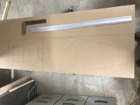 ich zitiere mal aus Beitrag 37. Soll ich Schablone noch einmal anders fotografieren? In der Bodenplatte der OF sind Löcher, die ich für die Befestigung der Schablone nutze. Ich habe keine neue gebaut, obwohl ich darüber nachgedacht habe die Bögen mit einem geringeren Radius anzufertigen, also sichtbarer zu machen. Die Spanten dafür liegen sogar schon bereit. Das wird dann aber fummelig, da man im Idealfall mit einem Ende über die gegenüberliegende Seite der Platte kommen muss. Die verwendete Schablone hat einen Durchmesser von ca einem Meter, das funktioniert bei der breiten Schallwand sehr gut.