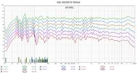 Die Entscheidung auf die Trennfrequenzen ist auch aus unzählichen Messungen entstanden, die Mitteltonkalotte hat ab 600 Hz einen super Frequenzgang und ist auch bei hohen Pegeln nicht überlastet, und ich muss einfach aufpassen dass ich mit dem TIW200 nicht ganz so hoch trenne, ... die obere Trennung habe ich in dieser Messung von 2500 auf 3000 Hz gedreht, da die G20SC davon ungemein profitiert. Das hat einige Auswirkungen unter Winkeln was noch im Nachgang verbessert werden muss: Bem. die Winkel muss man sich ausrechnen, bei 10 cm seitlich verschoben bei 50 cm Abstand habe ich angefangen (11Grad) und bin jeweils 10 cm weitergegangen, ... also bei 50 cm seitlicher Abstand wäre es 45 Grad. (letzte Messung ist 80 cm bei 50 cm Abstand, dies sind ungefähr 60 Grad)