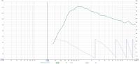 Die Trennung ist sicherlich ein Grenzfall, wobei das Horn um 14 bis 16dB lädt an der von mir angestrebten Trennfrequenz. Das reduziert den Hub dann schon erheblich. Wenn ich weißes Rauschen simuliere liegen bei 2,83V am Verstärlerausgang am Hochtöner bei der Trennfrequenz nur 0,4V an. Und das bei 92dB in 1m Entfernung insgesamt. Da erhoffe ich mir keine großartigen Klirrprobleme.
