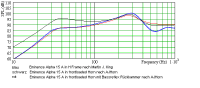 In Bezug auf Ripole reicht es auch nicht, sich nur das Verhalten unterhalb der gewünschten Trennfrequenz anzuschauen. Man muss auch auf den Resonanzbuckel oberhalb der Trennfrequenz achten. Und der steigt bei Niedrig-Q-Treibern von einem - im Vergleich zur Trennfrequenz - relativ höheren Niveau an als bei Hoch-Q-Treibern.