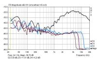 Die Messungen passen auch nicht. (Ich verweise nur nochmal kurz auf das Kompendium; wirklich gelesen?) Du hast mit 1/6 oct geglättet; wenn Du mal mit 1/24 oct glättest, siehst Du das wahre Ausmaß des Gezappels.