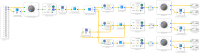 Ich setze vier Stück davon auf einem "Evaluierungsbrett" ein. ![]() Ein schönes Gehäuse kommt natürlich noch. Aber wie gesagt, die Zeit... Diese DSPs sind mit dem Sigma Studio komplett frei konfigurierbar. Das heißt von Haus aus kann es erstmal gar nichts. Zwischen allen Ein und Ausgängen kann man beliebig Filter verschalten, solange der Speicher ausreicht. Es gibt eine recht große Anzahl an vorgefertigten Filtern zur Auswahl. Dazu gehören Standardfilter wie Pegelsteller, diverse Equalizer, FIR-Filter, Kompressor usw. als auch Sachen wie "Dynamic Bass", "Loudness" oder logische Operatoren. Das Konfigurieren dauert ein bisschen, aber wenn das Routing erstmal steht, muss man nur noch die Filterwerte einstellen. Solange das Board per USB angeschlossen ist, werden die neuen Werte automatische übertragen und sind sofort aktiv. Anschließend kann man die Konfiguration auf das EPROM brennen, so dass es nach einem Booten aktiv ist. So sieht die Konfiguration meiner Frontlautsprecher im Sigma Studio aus: Für jeden Zweig wird ein FIR-Filter eingesetzt, der die Phasenverzerrungen der Hoch- und Tiefpässe kompensiert. Dadurch addieren sich alle Zweige rein konstruktiv. Weiterhin ist auch die Trennung zum DBA linearphasig, so dass die Gruppenlaufzeit quasi konstant ist. Das hintere Tieftongitter nehme ich linearphasig etwas früher raus, da der Bereich über 100 Hz dann weniger wellig ist. Das Signal des DBAs wird mit 2x-Downsampling bearbeitet, um eine höhere Präzision der Filter zu erreichen. Die Verzögerung der FIR-Filter habe ich im HTPC ausgeglichen. Viel ist das aber nicht. Die Rears werden auch phasenentzerrt, die Trennung läuft aber weiter rein analog. Die ADAUs ersetzen also meine alten Alto Maxidrive und den Pro C 28. Es war nicht ganz einfach, die Pegel so anzupassen, dass kein Clipping entsteht usw., da diese Boards Konsumerpegel erwarten und ausgeben. Meine alten Geräte waren dagegen aus dem Studiobereich. Letztendlich hat es aber alles geklappt. Rauschen ist nicht zu hören und Clipping entsteht auch bei Demopegeln nicht. Der Bass hat zusätzlich extra viel Headroom spendiert bekommen.
