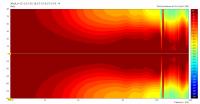 Die leichte Aufweitung um 3kHz ist mein einzig wirklicher Kritikpunkt und wird durch Interaktion des WG mit den SW-Seitenkanten verursacht. Die Simulation in ABEC zeigt, dass statt einer 30mm Abrundung, eine 30mm Fase die Abstrahlung in diesem Bereich verstetigen würde.