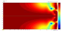 Die ABEC-Simulation im Vergleich dazu hat eine 54cm x 25cm Schallwand mit 16mm Pseudo-Abrundung (doppelte Fase). Das simulierte Mini-WG mit 15mm Tiefe ist einfach in die SW versenkt (keine Abrundung) auch mit 145mm Durchmesser: