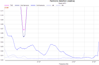 Ich würde mal wagen zu behaupten, dass bei der M2 Klirrmessung die Endstufe am Anschlag war. Die normalerweise verwendete Endstufe liefert etwa 1.5 kW an 4 Ohm. Da bleibt dann bei einem 32 Ohm Treiber mit vorgeschaltetem 6 dB Spannungsteiler nicht mehr viel Headroom übrig.
