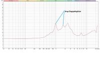 Warum? Ein "echtes" Horn mit der tiefen Grenzfrequenz wäre zu groß (da steht 2" 90° x 40°, welches genau leider nicht). Damit man da trotzdem noch ordentlich Schalldruck erzielt, wird das Horn etwas zu klein gewählt, und dafür eine TML-Resonanz in Kauf genommen. Die sieht man da an der Impedanzdoppelspitze.