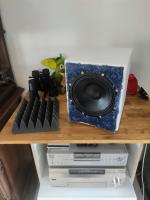 Den werde ich noch einmal etwas höher abstimmen. Zurzeit habe ich ihn auf 20Hz BR abgestimmt, aber das war eher ein Experiment. Ich denke so um die 30 bis 35 Hz passen besser zu den Koax.