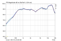 impact schrieb:Schlussendlich wissen wirs nicht bevor jemand gemessen hat. Habe selbst leider keine Möglichkeit dazu, stelle aber meine 4 Exemplare gerne zu Verfügung.Ich konnte mal wieder nicht nein sagen und habe mir zwei kommen lassen und mal das Micro vorgehalten (quick und dirty ohne Schallwand und ohne Rückwand als Dipol): [ATTACH=CONFIG]50031[/ATTACH] Ich finde die Ergebnisse passen soweit gut zu dem, was ich bei Parts-Express gefunden habe. https://www.parts-express.com/pedocs/spe...-44311.pdf Und die Serienstreuung ist doch auch soweit in Ordnung oder gibt es da was zum meckern. ....also ich würde sagen: Schnäppchen .....