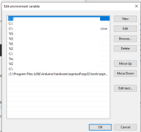 cd C:"Program Files x86"\Arduino\hardware\espressif\esp32\tools [ENTER] getx [ENTER] Für die PATH-Variable gibt es hier eine Anleitung: https://www.java.com/de/download/help/path.xml Da muss man also in dem Feld für Path hinter den vorhandenen Pfaden anfügen: ;C:\Program Files x86\Arduino\hardware\espressif\esp32\tools\esptool Ich habe jetzt meine Pfadangaben verwendet. Die sind ggfs. anzupassen. Wichtig, das Semikolon nicht vergessen! Der Pfad muss auf den Ordner führen, indem esptool.exe ist. EDIT: Ok, den Schritt mit getx.exe hast Du schon gemacht.