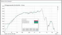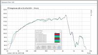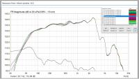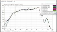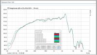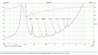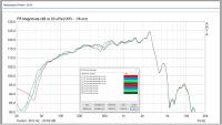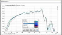 In Beitrag #8 sind Nahfeldmessungen der beiden Bässe im leeren Gehäuse dargestellt, also ganz ähnich wie bei Dir.