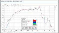 - Bei Einzelmessung der Bässe, bei denen jeweil nur ein Bass angeregt wird, wirkt der jeweils andere Bass als 'Passivmembran' - eigentlich auch zu erwarten.