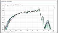 Als nächstes habe ich gemessen, ob die beiden Chassis gleich klingen. Sie tun es nicht. Erst wenn die Box komplett vollgestopft ist gleichen sich die Frequenzverläufe an. Interessant.