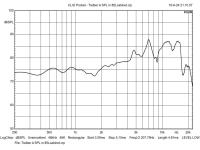 Obacht: Die Membran wird noch mit Acceleration angetrieben, d.h. ohne TSP. Das muss ich noch nachtragen. Aber prinzipiell scheint das zu funktionieren, siehe Einbruch bei ca 15kHz, der sich auch bei der Messung von Heinrich ohne Kegel findet: