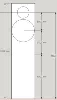 TMT habe ich gegenüber der Eingangsskizze während der x--over simulation um 150mm nach unten schieben müssen, um ein besseres vertikales Abstrahlverhalten zu erreichen. HT habe ich zeitlich per Delay optimiert für besseren Energiefrequenzgang.