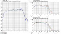 Weitere Chassis die mir noch eingefallen sind, wären der W250S von Visaton, Pegel und Linearität stimmen, Tiefgang wird leider etwas wenig sein. Passender wäre da der Peerless HDSN833 der mit akzeptabler Gruppenlaufzeit 33Hz f3 erreicht, hat aber eine Reso bei 800Hz.
