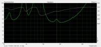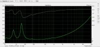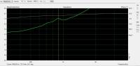 so, ich habe gerade meine erste Steppsinus-Messung hinter mich gebracht am TMT mit unmodifiziertem Gehäuse. Unten seht ihr das Ergebnis. So wie das aussieht, ist zumindest die Frequenzweiche damit wohl raus. Bleiben Treiber und Gehäuse.