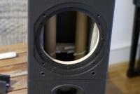 Und nun die Quizfrage: Wäre es eurer Meinung nach möglich, den Hochtöner zu tauschen? Er (82mm Breite, 65mm Höhe) scheint verleimt/verklebt zu sein. Raushebeln ist wohl die einzige Option. Danach müsste ich wohl ein Inlet ausfräsen, einkleben und danach die Aufnahme für den neuen Tweeter einfräsen. Hmm, ob das lohnt?