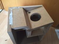 Na, da bin ich mal gespannt! Die Chassis-Versenk-Fräsungen würde ich, in dem Falle, nämlich noch vor dem Verleimen der Platten machen! Man braucht einen festen Drehpunkt für den Fräszirkel, die Schablone, respektive Platz für die Oberfräse Cool