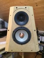 Aber das Test-Gehäuse ist fertig gebaut. Die Chassis sind eingebaut. Die Passivmembran kann durch eine Abdeckplatte ersetzt werden. Als Terminal nutze ich erstmal eines von speakon 4-adrig.