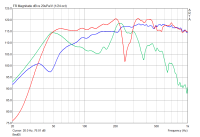 Die Abweichungen zu den Herstellerangaben sind nicht ganz unerheblich. Mal sehen, was die Simulation mit den selbst ermittelten Parametern so bringt (bisher hat das eigentlich immer ganz gut gepasst, wenn ich dann das darauf basierende Gehäuse nachgemessen habe).