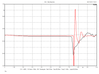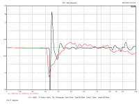 Also nochmal ausführlicher: ich habe einen kleines 8''/1''-Top entwickelt. Das habe ich so aufgestellt, dass es möglichst weit von reflektierenden Flächen entfernt war. Das Mikrophon (pegel- und FG-korrigiert) habe ich in einem Meter Entfernung aufgestellt und es auf den Punkt zwischen TMT und HT gerichtet, von dem aus voraussichtlich auch die Abhörachse ausgeht. Die Messungen habe ich dann gefenstert, indem ich die erste ankommende Reflexion ausgeblendet habe.