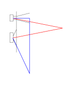 Mir kommt es logischer vor, TMT und HT von genau einer Position aus zu messen, nämlich von der aus, von der auch gehört werden wird. Ich habe den Punkt zwischen TMT und HT anvisiert, doch genauso könnte man den HT anvisieren, wenn es der zukünftigen Aufstellung/Ausrichtung gerechter wird.