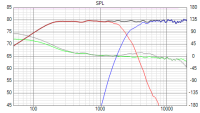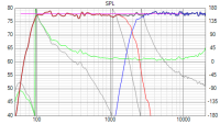 Hast du das Delay für beide Treiber eingetragen? Sieht aus als wenn du das nur für den Hochtöner getan hast. Zudem muss das Delay negativ sein. Das würde auch das Gezappel (Kammfilter bei 55cm Gangunterschied...) erklären. Man muss das Delay meist noch fein anpassen, nur die gemessene Entfernung ist da zu ungenau. Ich mache das meist für den TMT (Maus drauf halten und am Mausrad drehen, bis die Phase sich der Minimalphase [Rechtsklick ins Diagramm-->Show minimum phase] möglichst dich annähert) bevor ich den Hochtöner überhaupt geladen habe, und übernehme das dann für alle weiteren Treiber.