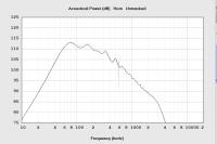 - Ich war mit unbedämpfter Rückkammer keineswegs unzufrieden mit dem Midbass - die Messungen zeigten nur eine kleine Resonanz bei 300Hz, die allerdings bei den Originalmessungen von Beyma von dem verwendeten Chassis auch zu sehen sind. Der Wirkungsgrad is bei 600Hz ca 6db geringer als im Maximum von ca 80..100Hz - die Grenzfrequenz des Horns liegt bei 50Hz...