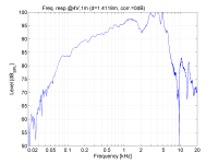 - Den Amplitudengang in einer Testbox bei 1W, damals war es noch die 16 Ohm Version. Die Schlenker unter 250 Hz und tiefer sind vom Raum