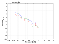 - THD bei einer geraden Entzerrung auf 100 dB - THD bei einer geraden Entzerrung auf 110 dB