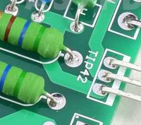 Die zweite Änderung ist der Tausch der Lastwiderstände vor den Endstufentransistoren. Die 2 Watt wurden gegen 3 Watt Mox getauscht und mir Abstand zur Platine eingelötet, da sonst richtig Wärme entsteht.