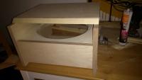 Oben kommt in Version 1; ein Kef Koax (Zitronenpresse) rein, Die abgeschrägten Kanten des Bassteil werden oben fortgesetzt und sollten für die Abstrahlung positiv sein und der Kantenreflexion entgegenwirken