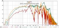 Um den gehäusebedingtenTiefbassgewinn besser sehen zu können habe ich noch mal mit angepasstem Pegel gemessen (S-Dipol gelb)
