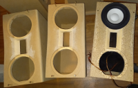 Mal wieder ein paar bunte Bildchen von mir. Ich habe die Mittelhochtongehäuse nochmal neu aufgebaut und dem AMT auch eine 45°-Fase in Richtung der Tiefmitteltöner gegönnt. Das misst sich besser, als die Version mit senkrechtem Trichter, die ihr oben seht, ist dafür halt 2 cm höher.