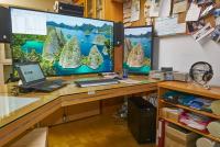 Sie sollten relativ schlank sein, da neben dem TV, den ich als Monitor verwende, wenig Platz ist. Der Arbeitsplatz sieht so aus,